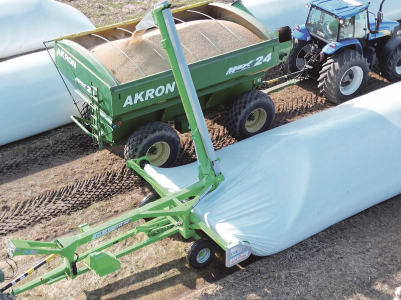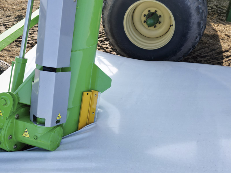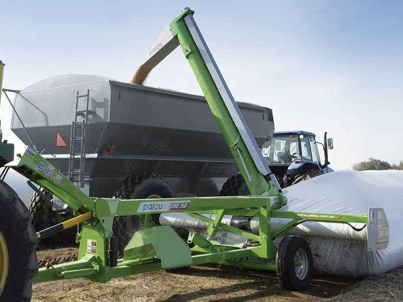 > Sistema de desacople automático del rolo, que permite quitar la bolsa sin que el operario descienda del tractor.