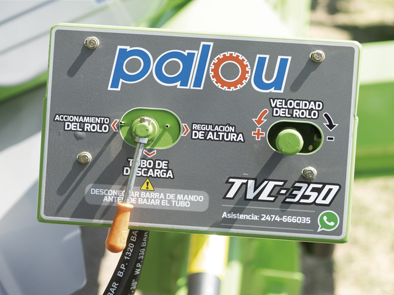 > Válvula desviadora de caudal para elevar y bajar el tubo de descarga, regular la altura de la máquina y accionar el rolo.